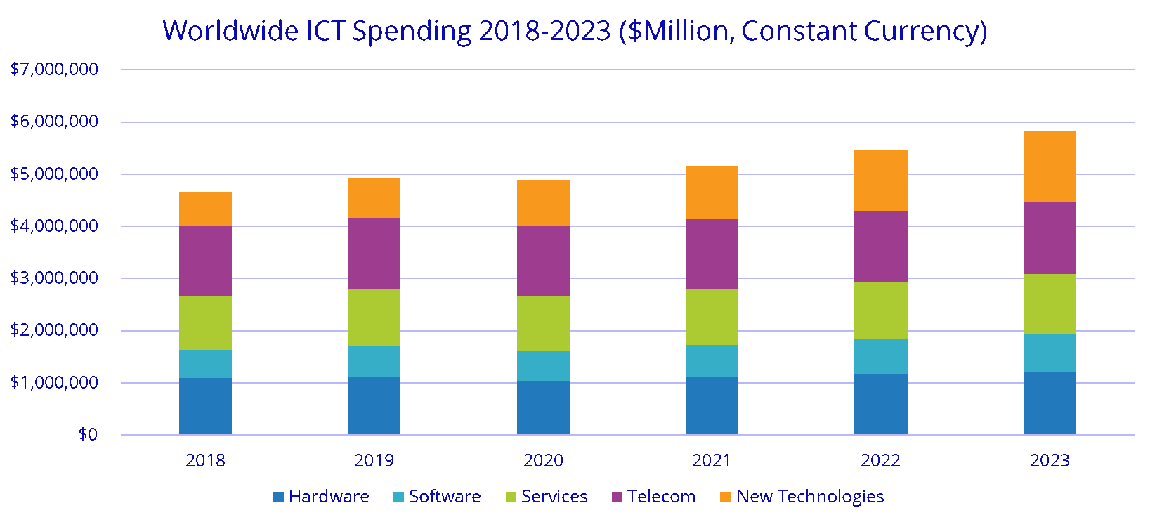 The International Data Corporation (IDC) estimates corporate spending on new technologies will grow by 2x GDP in the coming years.